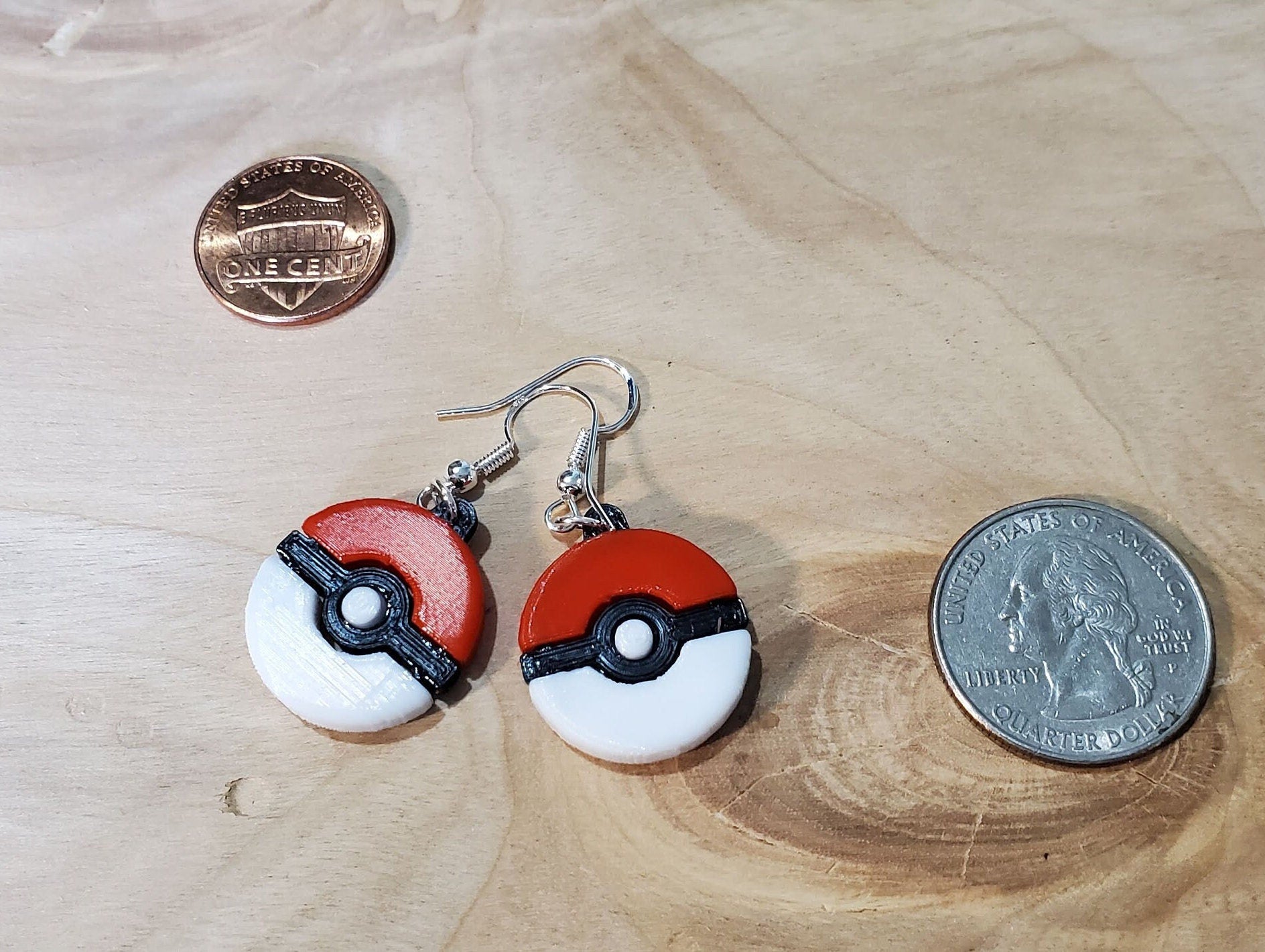 These are a pair of earrings I designed with inspiration from Pokemon. They are dangly and light, having been 3d printed out of PLA plastic with Sterling Silver hooks. I'm hoping to add more designs over time and refine the make. For now they're made to order and I'm open for suggestion for other Pokeball types to base this design style on. I also have round ones coming as well!