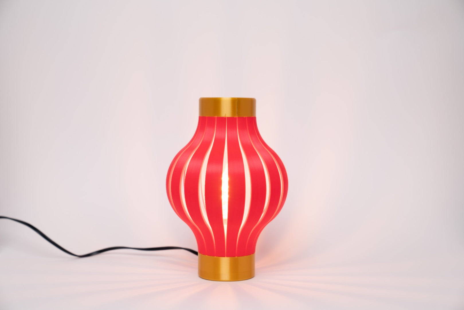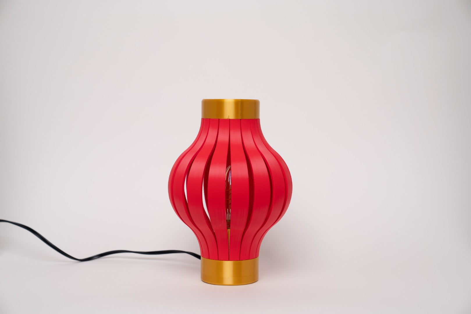 Experience the warm, inviting glow of our handcrafted 3D printed lamp, reminiscent of traditional Chinese lanterns. This unique piece combines the rich symbolism of Chinese New Year colors – a vibrant red body with elegant gold caps – to create a truly distinctive lighting fixture.